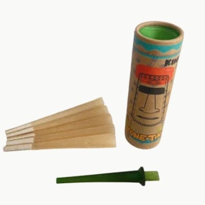 This is the KONE-TIKI® starter kit plus 5 unrefined brown conesIf you cant roll joints for S@#$% or you just want an easier way to fill up your pre-roll cones? KONE-TIKI® is the perfect tool for YOU ! KONE-TIKI® is made of recyclable materials and plant based resin. Just open the seal and insert a 1 -1/4 (109 mm) brown unrefined Cone, fill it up with your favorite herb and pack it in with the custom packing stick included. After a good push just insert you finger in the bottom part and push up your perfect rolled joint for a good and fast one.