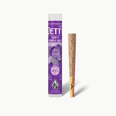 "A Bit About The Product: GDP x Purple Haze is a high-THC, indica-dominant hybrid. This strain combines the heavy indica effects of Granddaddy Purple (deep relaxation, berry-grape aroma) with the uplifting, cerebral, and sativa-dominant characteristics of Purple Haze. "