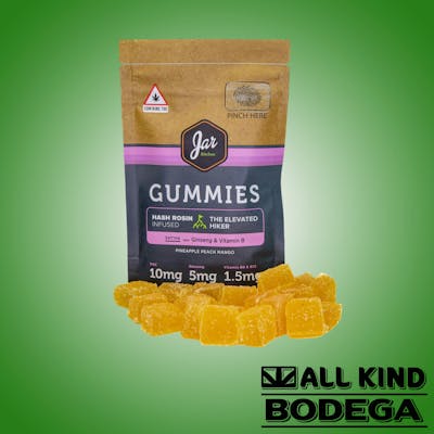 Each gummie contains 10mg THC, 5mg Ginseng, and 1mg Vitamin B