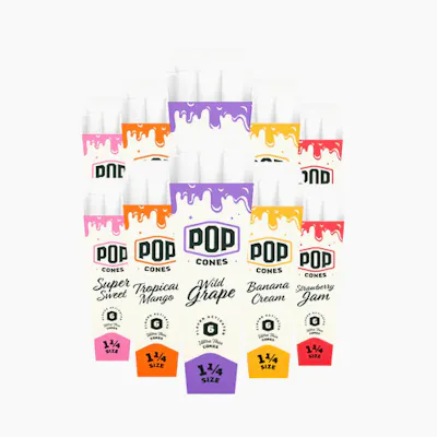 Are you ready to take your smoke sessions from ordinary to extraordinary? Look no further than our one-of-a-kind Pop Cones 1 ¼ size pre-rolled cones – the game-changers of the smoking world. What sets them apart from the rest? It's the secret ingredient that lies within – flavor beads! Nestled in the filter tip, these tiny flavor bombs are filled with tantalizing terpenes, waiting to burst forth and transform your smoke into a flavor-packed extravaganza. Simply give them a gentle squeeze and pop, and let the magic unfold. Each drag becomes a flavorful journey, as the terpenes dance on your tongue and elevate your smoking experience to new heights. Don't settle for ordinary; be extraordinary. Size: 1 ¼ Type: Ultra Thin Cone Total Length w/ Filter: 84mm Filter Length: 26mm 6 Cones/Pack