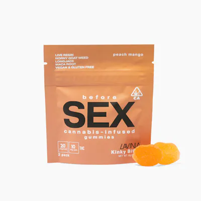 Lavinia Before Sex Peach Mango gummies are made with live resin and positioned as a “set the mood” edible with a juicy, tropical flavor profile. Expect a feel-good lift with relaxed confidence and a playful, sensual vibe—great for date nights or staying connected and present.