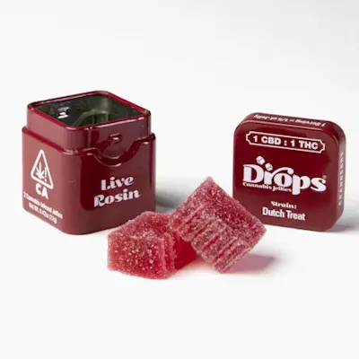 Drops Cranberry Focused Energy gummies are vegan, live rosin-infused jellies designed to boost focus, creativity, and energy. These gummies feature a balanced 1:1:1:1 ratio of 2.5mg THC, CBD, CBG, and CBC per piece, offering a functional, clear-headed high with a tart cranberry flavor.