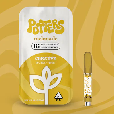 Potters Melonade Live Terpene Rich vape is a high-potency, sativa-dominant hybrid, delivering a vibrant, uplifting, and creative experience. It features a bold, tropical flavor profile of sweet melon and zesty citrus. This live resin/terpene-rich extract is designed for a flavorful, euphoric high, perfect for daytime, socializing, or artistic projects.