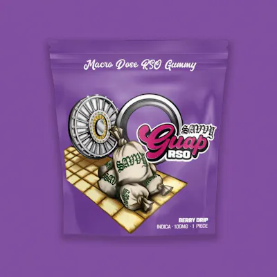Short stacks, the highest dose. Savvy Guap RSO gummies are money, loaded with 100mg THC and terps in one big-bite-sized piece for a full-spectrum high you’ll crave. Taste the goods in indica Berry Drip, a fruity flex of sweet strawberry and zesty lemon.