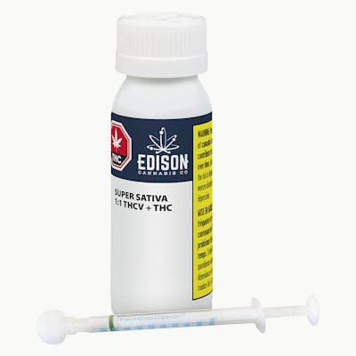 Edison’s unique Super Sativa 1:1 THCV+THC oil. The THCV is natural.