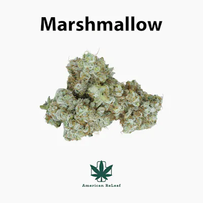 Marshmallow is an indica dominant hybrid strain created through a cross of the classic OG Kush X an unknown strain. Although its second parent is unknown due to breeder secrecy, Marshmallow is thought to be a descendent of the Bubble Gum family because of its sickly sweet sugary flavor and mellow indica effects. Like its name suggests, Marshmallow has a super sweet candy flavor accented by nutty honey and a touch of fruitiness. The aroma is just as sweet, with a slightly pungent rotting marshmallow overtone that can be a little overwhelming to some upon exhaling. The Marshmallow high definitely hits the balanced hybrid sweet spot with indica heavy effects that are complemented by a nice cerebral high. It hits first in the forehead and behind the eyes with an uplifted euphoria that leaves you happy but totally hazy and a little out of it. As this high builds, it'll spread throughout the rest of your body in warming waves, leaving you with a tingly feeling from head to toe that numbs away any aches or pains. This will lull you into a state of complete relaxation, which pulls you down slowly into a hungry yet very sleepy state that almost always ends in a nice nap. Marshmallow is perfect to treat insomnia, appetite loss, chronic pain, muscle spasms, and nausea.