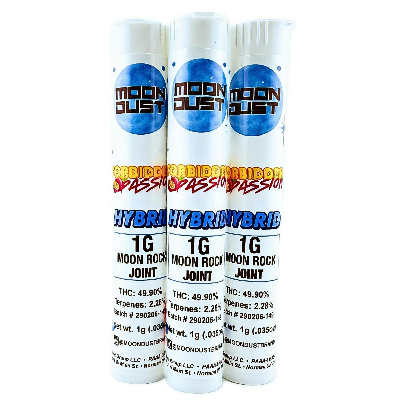 Indulge in exotic flavor with Moon Dust’s 1g Moonrock Joint — Forbidden Passion, a hybrid designed for balance, smooth potency, and irresistible taste.