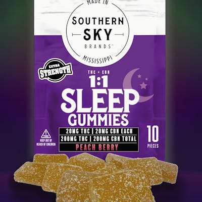 1:1 THC:CBN, Sweet dreams are made of these. These bedtime buddies work with your body and help mellow your mind and calm your senses so you can relax and zzz with our fresh Peach Berry flavor (Peach & Blackberry flavored gummies)