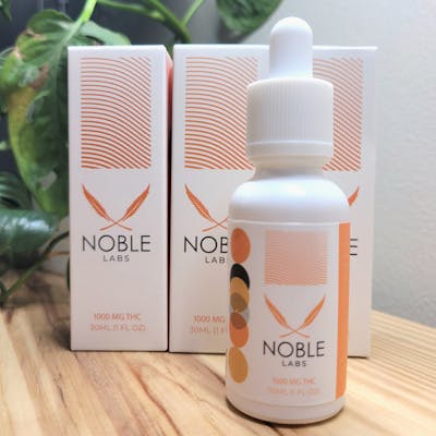 Noble Labs - Tincture - 1,000 mg THC - 30 ml Total THC: 1,000mg/unit Total CBD: 0mg/unit Serving size: 0.3ml Total Servings per Bottle: 100 Net Weight: 30ml ... Supporting the momentum of cannabis tinctures, Noble Labs aims to address specific medical concerns and improve the overall quality of life for our patients. Our Tinctures are all natural, using only cannabis distillate, hydrogenated coconut oil, and essential mint oils. These tinctures are beneficial to many patients and fast acting. Those Patients that need paint relief to lower inflammation, improved sleep, and relieve nausea but don't want to smoke cannabis. This is just the thing for them. ... Discreet and convenient consumption Portable and odorless: Packaged in small, portable bottles, tinctures can be used discreetly in various settings without producing the smoke or strong odor associated with smoking or vaping. Alternative to smoking: For individuals concerned about respiratory health, tinctures offer a smoke-free way to use cannabis, eliminating the inhalation of tar and other combustion byproducts. Long shelf life: When stored properly in a cool, dark place, cannabis tinctures can remain potent for years, making them a practical and long-lasting option. Low-calorie option: Tinctures are often low-calorie, offering a healthier alternative to sugary edibles for calorie-conscious users. ... Effects & Benefits Rapid onset: When taken sublingually, the cannabinoids are absorbed directly into the bloodstream through the membranes under the tongue, bypassing the digestive system. This allows users to feel the effects in as little as 15–30 minutes. Therapeutic benefits: Tinctures containing THC, CBD, or other cannabinoids can help with a variety of conditions. These may include: Pain and inflammation relief Anxiety and stress reduction Improved sleep quality Appetite stimulation and nausea relief