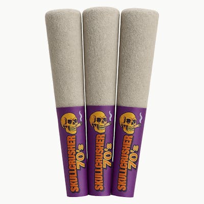 Iced Raspberry – Quad Diamond Infused Pre-Rolls from Skullcrusher 70’s by RAD slam down with 70% THC potency. Packed with liquid diamonds and solid diamonds inside, then finished with a diamond coating, these pre-rolls unleash a frosty raspberry blast.