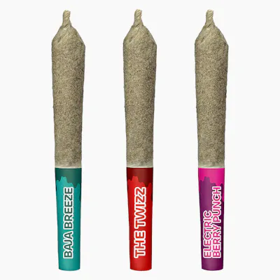 Enjoy the High Score Sativas Variety Pack, including Baja Breeze, The Monster, and The Twizz. This flavourful load-out includes 3 x 0.5g whole flower sativa pre-rolls infused with liquid THC diamonds, and rolled in kief for extra potency.