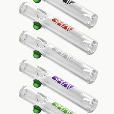 The GRAV Mini Steamroller is perfect if you're on the go but still want a piece that packs a punch. Its discreet shape and small size will fit in a pocket or a pencil case, but it still delivers big steamroller hits. The inverted ash catching mouthpiece and stabilizing glass feet make this piece enjoyable and easy to use any time. Clear glass with coloured GRAV logo. The spherical glass legs/stand located directly under the bowl are a different colour on each piece, regardless of logo colour. Made in the USA High grade borosilicate glass