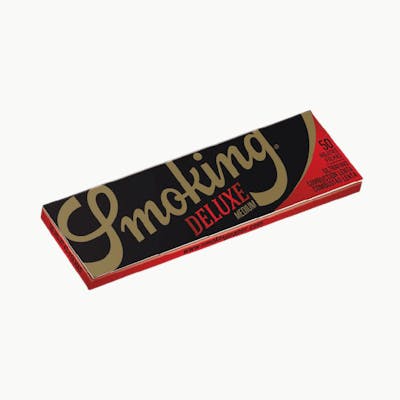 Smoking Deluxe Smoking Papers Regular 1¼" are a standard sized regular Smoking paper with a length of 78mm and 44mm in width. Made from rice paper they are ultra thin and come in a black vintage packaging. Each single leaf is made of a watermarked pure rice paper for assurance and natural gum that sticks every time. A paper slip folded in with the leaves reminds you when you're running low. One single pack contains 50 rolling papers. 50 Ultra Thin Rice Papers Per Pack