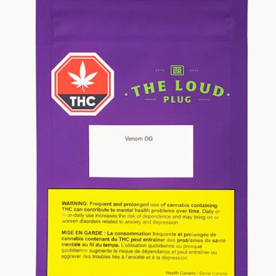 The Loud Plug Venom OG LINEAGE Venom OG x Garlic Breath PLANT TYPE Indica Dominant AROMA Spicy, skunky, hints of citrus, floral undertones