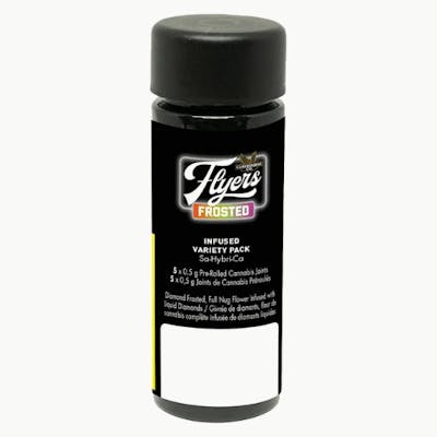 Claybourne Frosted Flyers Infused Variety Pack features 5 strains in one pack. These 5×0.5g pre-rolls are THCa diamond frosted, terpene enhanced and infused with liquid diamonds. Looking for bold flavour and a potent experience? Look no further than Claybourne Frosted Flyers.