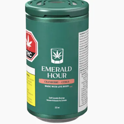 Emerald Hour makes elevated alternatives to familiar classics. Their Cranberry and Citrus recipe is an expertly crafted beverage infused with 10mg of THC sourced from live rosin and cannabis diamonds. This metropolitan classic has a natural cranberry tartness balanced perfectly with a citrus finish.