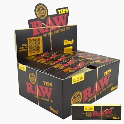 To go with the finest rolling papers ever made, RAW Black Rolling Tips are meticulously made using the old ways that master craftsmen have passed down for generations. RAW Black Rolling Tips roll smoothly and do not "square" to give you an exceptional smoke. They’re strong enough to hold up to your next sesh. Unbleached and chemical free. 50 tips per pack 50 packs in a case