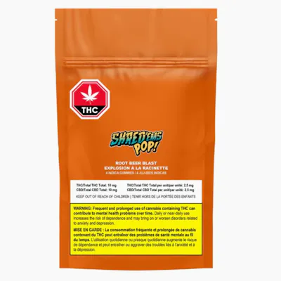 SHRED’ems POP! Root Beer Blast gummies are packed with a classic soda pop flavour and are infused with 2.5mg THC plus 2.5mg CBD per piece. While a frosty mug might be fun, this Root Beer will blast your tastebuds AND your senses. The entire lineup of SHRED’ems gummies are vegan-friendly and made with all-natural flavours.