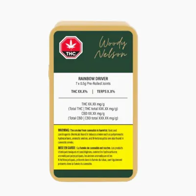 The Woody Nelson edition of the Rainbow Driver genetic was bred by Archive Seed Bank and grown in an indoor vertical farm using organic living soil. This high-THC cultivar is rich in terpenes, including Limonene, Beta-Myrcene, and Nerolidol and smells like super sweet gas. The plant's dense, sticky buds are cured for a minimum of three weeks, never irradiated, and come in a reusable sliding tin with 7 x 0.5g pre-rolls.