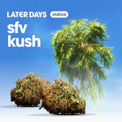 Some strains make a scene—SFV Kush just gets to the point. Expect fresh pine, herbal depth, and just a little sweetness on the back end. The smoke is smooth, the high comes on low and steady, and your whole body feels like it finally got the memo to chill. It’s the kind of strain that does exactly what you hoped—nothing more, nothing less.