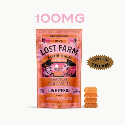 About the Product: 10 pack ~10mg/serving Lost Farm Fruit Chews and Gummies are strain-specific, plant-based confections made with 100% live resin. These edibles immortalize the fresh cannabis plant and harmoniously combine it with fruit flavors that enhance each strain’s unique profile. The result is a full-sensory, ultra-fresh, and extra-strength edible APRICOT GELATO STRAIN NOTES: Terp-rich and Indica-dominant, Apricot Gelato is a classic citrus cross of Gelato #1 and Legend Orange Apricot. Its light gelato cake character is dominated by apricot and chemically-sweet/ lemony notes reminiscent of Orange 43. FLAVOR NOTES: Frozen lemonade flavors are deliciously blended with citrus cake notes from Apricot Gelato live resin.