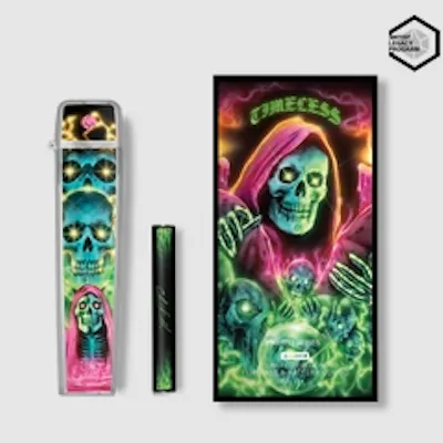 – Limited-edition Timeless x Chad Keith Flip Case & Battery Combo -We took special consideration to keep both you and your Timeless Vape clean with the Timeless Flip Case & Battery Combo, fashioned specifically for discretion while medicating. This unique case is specifically made to fit the Timeless Vapes TV6 battery when attached to any of our Timeless cartridges. The plastic case is 5 inches by 1 inch at its widest. Just slide your Timeless Vapes pen into the case and prepare to Taste the Terps! - Timeless -Chad Keith’s artistic style is a raw, unapologetic blend of "easy, trashy, and sloppy," as he likes to describe it. His artwork lies in the space between playful and scary, drawing viewers in with bold designs. Drawing from a variety of mediums—including airbrush, paintbrush, and even his fingers—Chad brings his unique vision to life with an energy that’s as unpolished as it is captivating. -