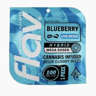 Flav Blueberry Belts are the citrusy berry flavored gummy belts that are infused with premium cannabis. With the citrusy blueberry flavored sour gummy belts coated with sugar and infused with 10mgs of THC per belt. With 10 pieces per package you'll be able to accurately and safely medicate at a level you're comfortable with. Sweet candy flavored with the benefits of premium cannabis Flav Blueberry Belts makes medicating enjoyable.