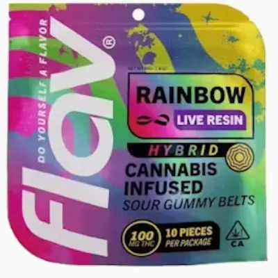 Flav Rainbow Belts are the fun and fruity gummy belts that make cannabis edibles easy and effective. With all the flavors of the rainbow packed into 10 gummy belts, each infused with 10mg of THC per belt. When it comes to having a full spectrum of flavor, no candy does it quite like Flav Rainbow Belts.