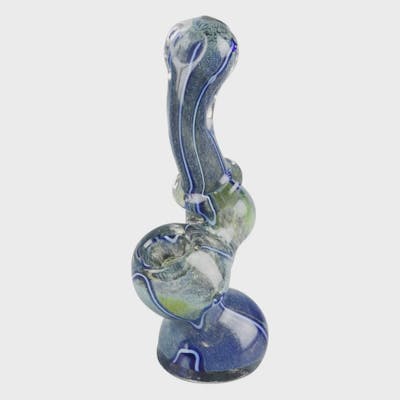 The Worked Fritted Bubbler Hand Pipe stands 4" tall and features hand-blown fritted boro glass with a recessed bowl. Color and size may vary.