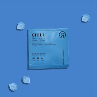 CHILL for Relaxation CHILL promotes relaxation through a blend of cannabis CBD and plant medicine. Swallowable pills with a rapid onset of 20 minutes. Vegan calorie-free sugar-free and gluten-free. *Swallow do not chew*5mg THC/25mg CBD per Drop2 Drops per unit = 10mg THC/50mg CBD per unit