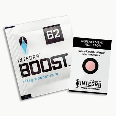 Integra Boost by Dessicare 4g pack will keep a relative humidity of 62%. Each packet is individually wrapped to maintain freshness