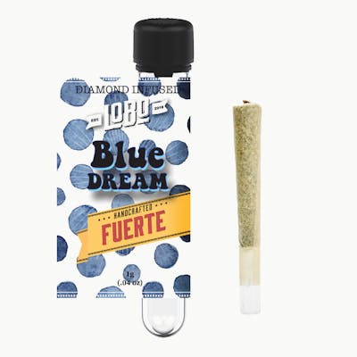Distinct smell and taste of blueberry. Blue Dream is a sativa-dominant hybrid, a cross of Blueberry and Haze. This strain produces a balanced high, upbeat and focuses, along with effects such as cerebral stimulation and full-body relaxation. Fuerte means strong, and this glass-tip, THCa diamond infused joint delivers. 1g of terpy flower nugs, never any trim. Reusable glass-tip.