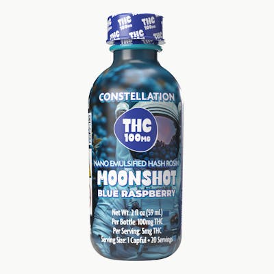 Blue Raspberry - 100mg THC - 2oz rosin beverage Constellation’s Blue Raspberry Moonshot is a supernova of berry flavor for those who appreciate the tried and true classics. Crafted with 100mg of nano-emulsified hash rosin, the effects hit fast, so you chill, sip, and launch into orbit.
