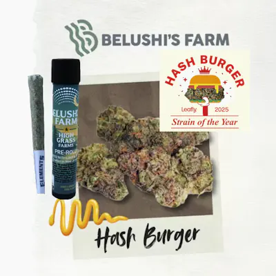 Belushi’s Farm 1G Pre-Roll Hash Burger packs a spicy punch. This heavy hitting indica is known to be cerebral at first before working its way to the rest of the body. Fans of Hash Burger claim that it's the perfect strain to lift your mood while reducing stress and depression. Consider yourself warned, as Belushi’s Farm Hash Burger has been known to sedate the body, giving you a couch-locked feeling followed by an even heavier appetite. Not for the inexperienced, Hash Burger is a the perfect strain to sip on before going all in to gauge its effects. Known for being a well balanced Indica, Hash Burger may be perfect for sleep at the end of the day.