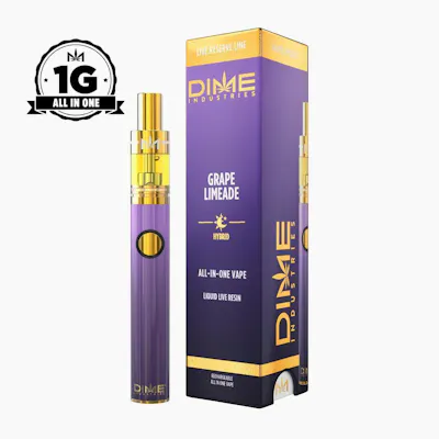 Experience the bold, refreshing fusion of Grape Limeade with this premium hybrid cartridge from Dime Industries. This 1g cartridge delivers a vibrant flavor profile that blends sweet, juicy grape notes with tangy, zesty lime for a truly invigorating vape experience. As a hybrid, Grape Limeade offers a balanced blend of uplifting and relaxing effects, making it perfect for any time of day. Whether you're seeking creative focus or simply want to unwind, this strain provides euphoric, feel-good vibes without tipping too far in either direction. The smooth, flavorful vapor showcases Dime Industries' commitment to quality and consistency. Enjoy the fruity, citrus-forward aroma and the satisfying effects that come from this carefully crafted cartridge. Ideal for both seasoned enthusiasts and newcomers alike.