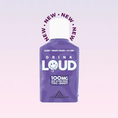 THC9: 2.09mg/g -- Unwind with Grape Crash, the latest addition to the Drink Loud lineup, featuring a smooth grape flavor that makes dosing a breeze. Our innovative nano-emulsified THC + CBN formula ensures a uniquely consistent experience, allowing you to simply sip and relax.