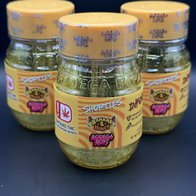 Satisfy your cravings with Bananas & Honey Shorties - a delectable fusion of sweetness and richness, neatly packaged in a convenient barrel stash jar. Each joint is meticulously crafted with .7 grams of premium flower, infused with diamonds, and coated with premium Bodega Boyz thca diamonds, housed in a stylish barrel stash jar.. Immerse yourself in the creamy sweetness of ripe bananas, complemented by the golden richness of honey for a flavor profile that's both comforting and delicious. Whether you're seeking a moment of relaxation or a burst of flavor to brighten your day, Bananas & Honey Shorties offer a delightful escape to a world of sweetness. It's time to treat yourself to this irresistible blend and indulge in the pure pleasure of bananas and honey. Reusable ceramic tips make this experience hit different.