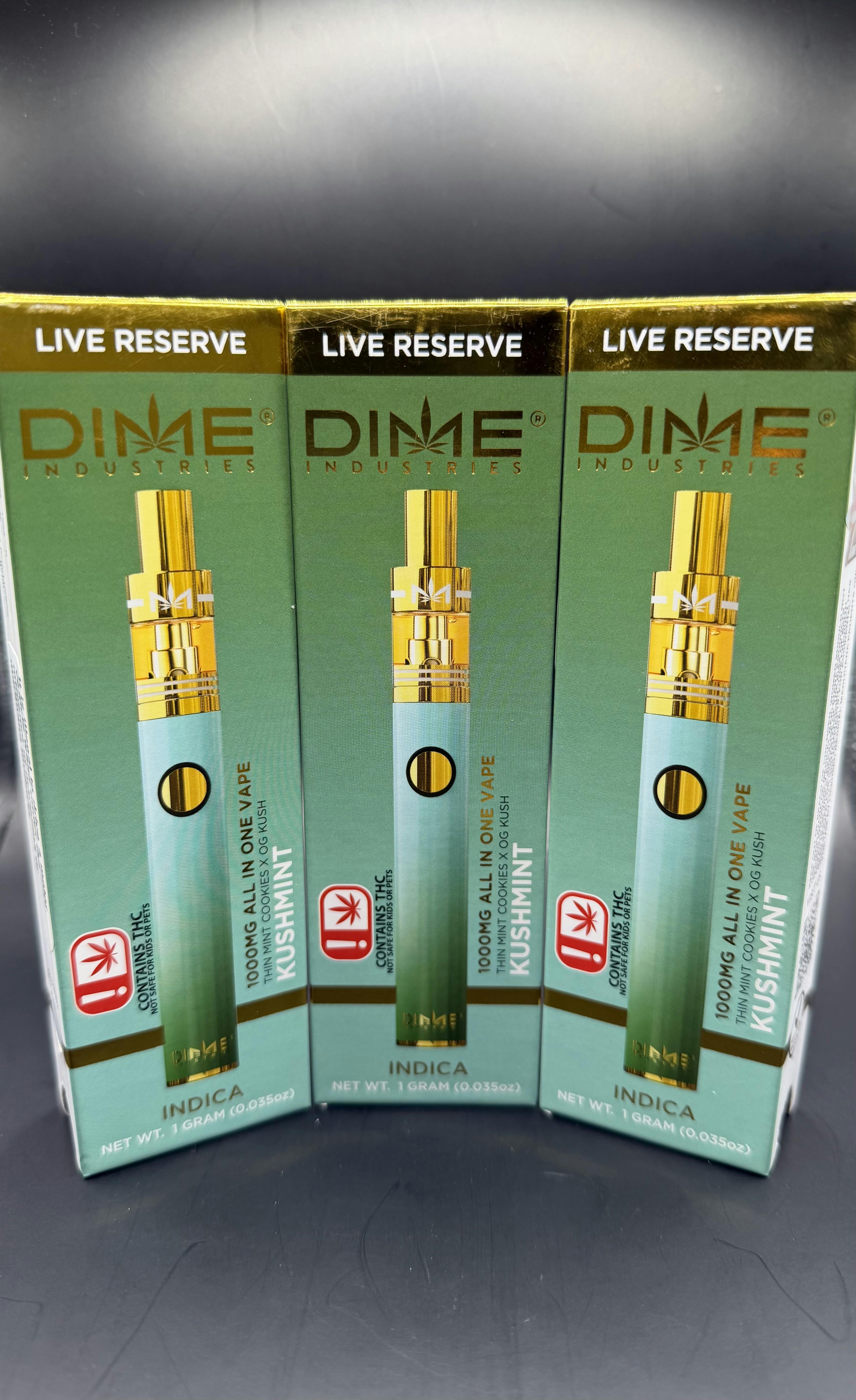 Dime Live Res. | Kush Mints | Indica | THC: 86.62% TERPS: 7.43% | 1G Disposable (Tax Included)