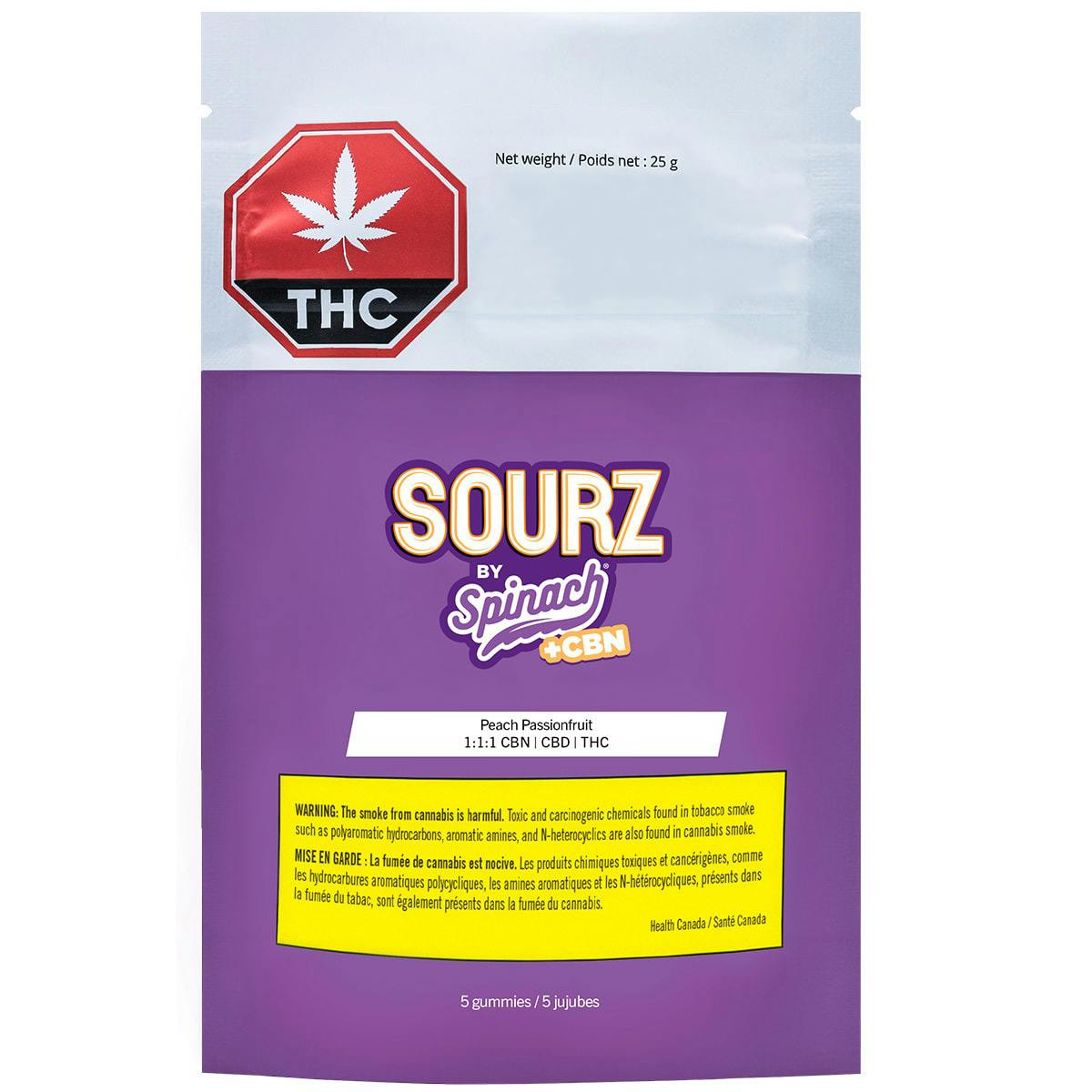 Sourz Fully Blasted Peach Passionfruit 1:1 CBN:THC 10mg Gummy