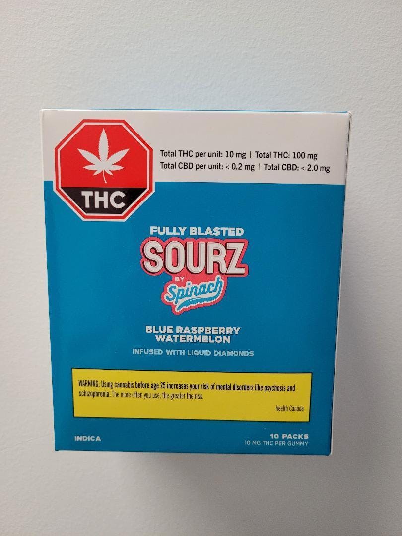 Sourz Fully Blasted Blue Raspberry Watermelon 10x10mg Gummies