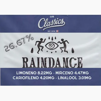 Raindance is an indica-dominant strain of unknown origins thought to be a combination of a Chemdawg backcross matched with Deadhead OG.