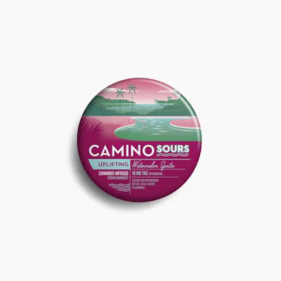 Each Gummy Contains 10mg THC Find yourself the life of the (pool) party with Kiva’s Watermelon Spritz Camino Sours. Energizing, Sativa-like terpenes meet sharp, juicy watermelon flavors for a splashy sweet that will leave you feeling refreshingly enlivened.