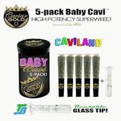 Indulge in luxury with Caviar Gold Baby Cavi - a meticulously crafted collection of premium infused prerolls designed to elevate your smoking pleasure. Each package features five .5g prerolls infused with top-tier cannabis extracts, ensuring a potent and flavorful journey with every inhale. What sets Caviar Gold Baby Cavi apart from the imitators is its fine attention to detail and dedication to excellence, with each preroll expertly handcrafted using only the finest cannabis flower and concentrates. Adding to the sophistication, every package includes a sleek glass tip that enhances the smoking experience, providing a cooler draw and preserving flavor integrity while adding an elegant touch to your smoke sessions. Whether you're a seasoned connoisseur or new to cannabis, Caviar Gold Baby Cavi delivers an unmatched smoking experience that embodies ultimate luxury.
