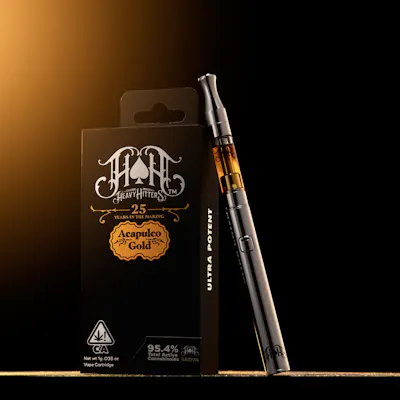 Heavy Hitters Ultra Extract represents the pinnacle of cannabis purity. Combining premier input material and uncompromising quality control, Heavy Hitters benchmark oil delivers an ultra pure, perfectly crafted cannabis experience. Ultra Extract is sourced from New York's top-tier whole flower. The result is a clear, smooth, and potent oil with exceptional taste. Each cartridge is subjected to multiple independent quality checks ensuring a best-in-class vape experience. Ultra Extract is crafted with 100% cannabis-native terpenes and contains up to 95% THC. Celebrating 25 years in the game, the Acapulco Gold Special Edition is a testament to the Heavy Hitters legacy of perfection. Native to Acapulco, Mexico this strain’s unique golden color and high potency made this strain immensely popular during the 1960s counterculture movement. A special grade of cannabis, Acapulco Gold remains one of the most sought-after strains for cannabis enthusiasts and connoisseurs. Treat yourself to the treasure of a lifetime. Acapulco Gold is widely-recognized as one of the greatest Sativas in the world of Cannabis, and once you experience this creamy, toffee-tasting slice of heaven, you’ll understand why. Expect motivation, energy, and a cerebral high that’ll have you back for more