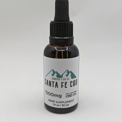 Santa Fe CBD presents our Full Spectrum CBD oil. Our CBD oil is made with the best full-spectrum crude oil. Our bottles also come with a labeled dropper to ensure you get the proper dosage each time. 3rd Party Testing (Certificate of Analysis) Ingredients: Caprylic, Capric Triglyceride(Fractionated Coconut Oil), Cannabidiol Oil (CBD). Suggested Use: For best results, store in a cool and dry place away from direct sunlight. If you have a medical condition or take pharmaceutical drugs, please consult a physician before use. Directions: Take 1 to 2ml sublingually as needed. (33mg per ml) Gently squeeze the rubber end and release. The dropper will be half full which indicates a βfull dropperβ. (Oil will not fill the entire dropper) Repeat regimen twice a day, once in the morning and once before bed. Sensitive to the flavor? Feel free to mix your oil into your favorite food or drink. **CAN ALSO BE USED FOR PETS** Please refer to the 250mg pet oil dosing for proper dosing with the 1,000mg oil. MADE IN AMERICA AND NEW MEXICO TRUE CERTIFIED