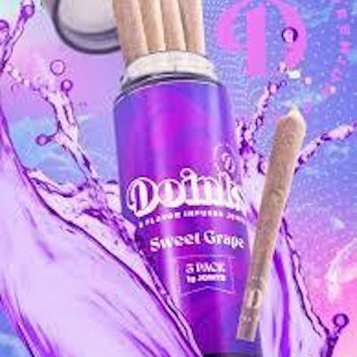 Doinks Joints Sweet Grape are premium, distillate-infused pre-rolls known for their potent effects and "purple nostalgia" flavor profile. While they are most commonly sold as individual 1g joints, some retailers offer them in multi-pack configurations like the 5-pack or 4-pack (0.5g each). Product Highlights Flavor Profile: Features a deep grape jelly flavor designed to recreate a classic "purple" taste experience. Infusion: These are premium joints infused with ultra-pure distillate and paired with top-shelf flower. Effects: Generally categorized as a Hybrid or Indica-leaning, users report feelings of relaxation, bliss, and being "centered". Potency: THC levels typically range from 23% to over 35%, depending on the specific batch and infusion type.