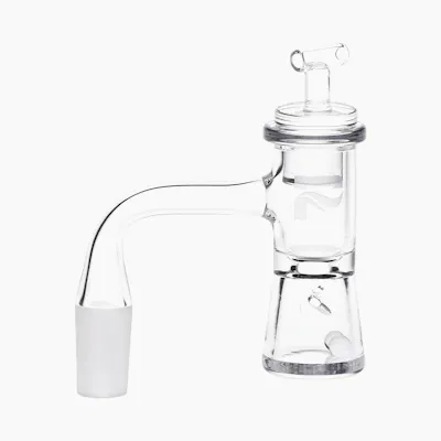 Pulsar banger set Flat top quartz banger Dual-chamber terp tower design with auto spinner vortex holes Includes carb cap & 2 terp pearls 14mm male slide joint 90 degree joint angle Pulsar logo The Auto Spinner Quartz Banger Set from Pulsar includes everything your customer needs for complete vaporization of concentrates. The banger bucket is divided into two chambers to constrict the flow of the smoke as it rises, and the included carb cap provides a vacuum-like effect so that no vapor is lost. Get the most out of your concentrates using the included terp pearls to maximize airflow. The banger has a 14mm male frosted joint with a 90 degree joint angle.