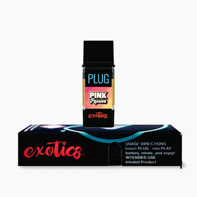 Bold, vibrant, and flavor-packed β PLUGplay EXOTICS Pink Passion delivers a smooth, high-potency experience in a sleek 1g all-in-one device. Crafted with PLUGplayβs signature quality, this exotic blend bursts with juicy fruit flavor and rich vapor in every pull.