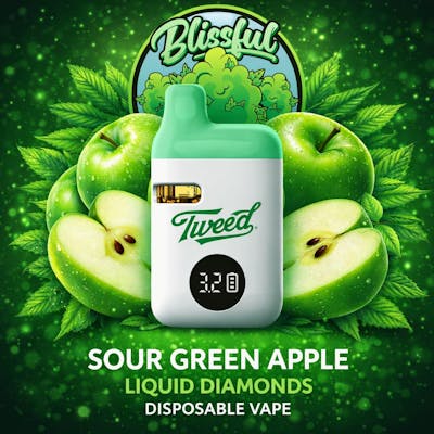 Tweed - Sour Green Apple 1G AIO Liquid Diamond - Disposable Vape