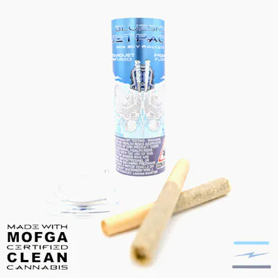 Pink Passion Fruit (Apples & Bananas x Triple Scoop) SATIVA LEANING HYBRID Fruity pink flavor meets funky fuel. Slap Happy (Tina x Gary Poppins) INDICA LEANING HYBRID Green grapes, smarties and jet fuel. The Blue Sky JetPack™ is a package of two or more mini Sky Rockets™. Their compact nature makes them perfect for those who want something a little smaller than the original Sky Rocket™. Also, having multiples means you don't have to share your rocket! Made with organically grown cannabis.